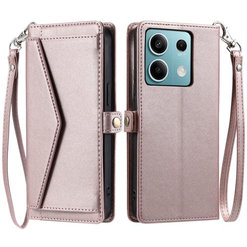Funda de Cuero con Ranura para Múltiples Tarjetas y Cordón para Redmi Note 13 5G Global Wallet (Oro Rosa)