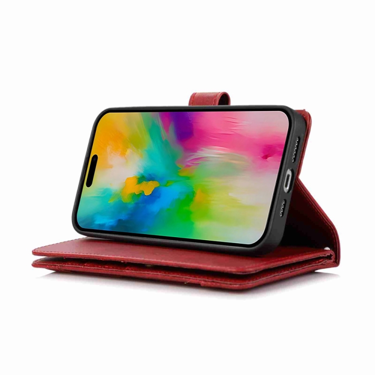Funda de Cuero con Ranura para Tarjeta y Pulsera para iPhone 16 Pro Max (Rojo)