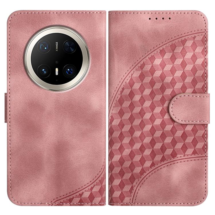 Funda de Cuero con Relieve Cabeza de Elefante para Huawei Mate 70 Pro y Mate 70 Pro+ con Cordón (Rosa)