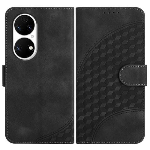 Funda de Cuero con Relieve de Cabeza de Elefante para Huawei P50 con Cordón (Negro)