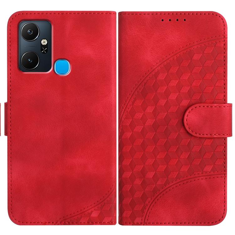 Funda de Cuero con Relieve Cabeza de Elefante para Infinix Smart 6 Plus con Cordón (Rojo)