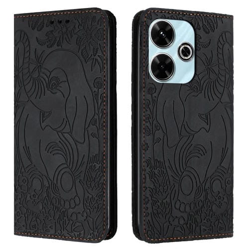 Funda de Cuero con Relieve de Elefante Retro para Xiaomi Redmi 13 4G (Negro)