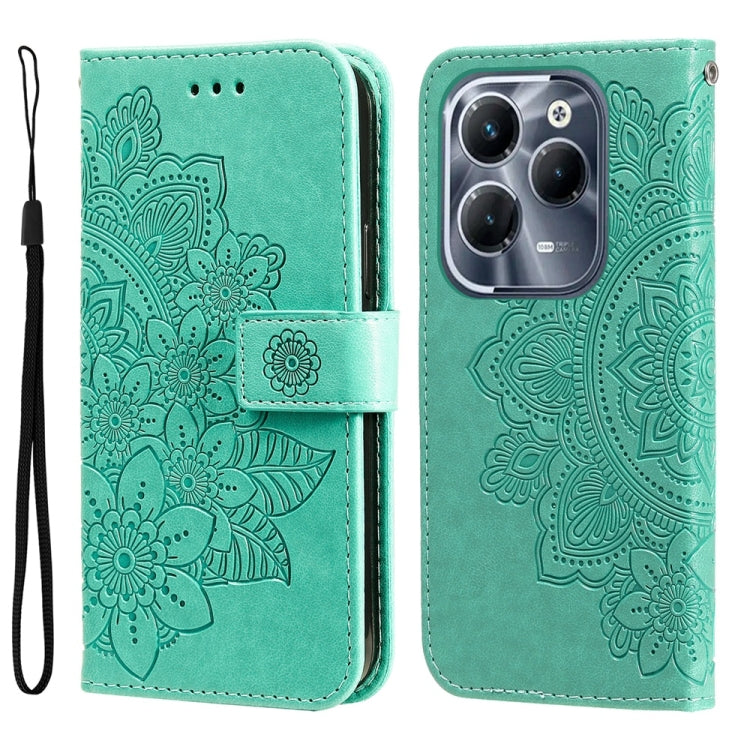 Funda de Cuero con Relieve de Flores de Siete Pétalos para Infinix Hot 40 y Hot 40 Pro (Verde)