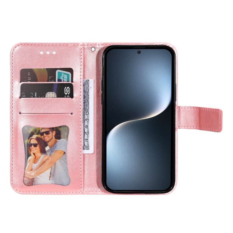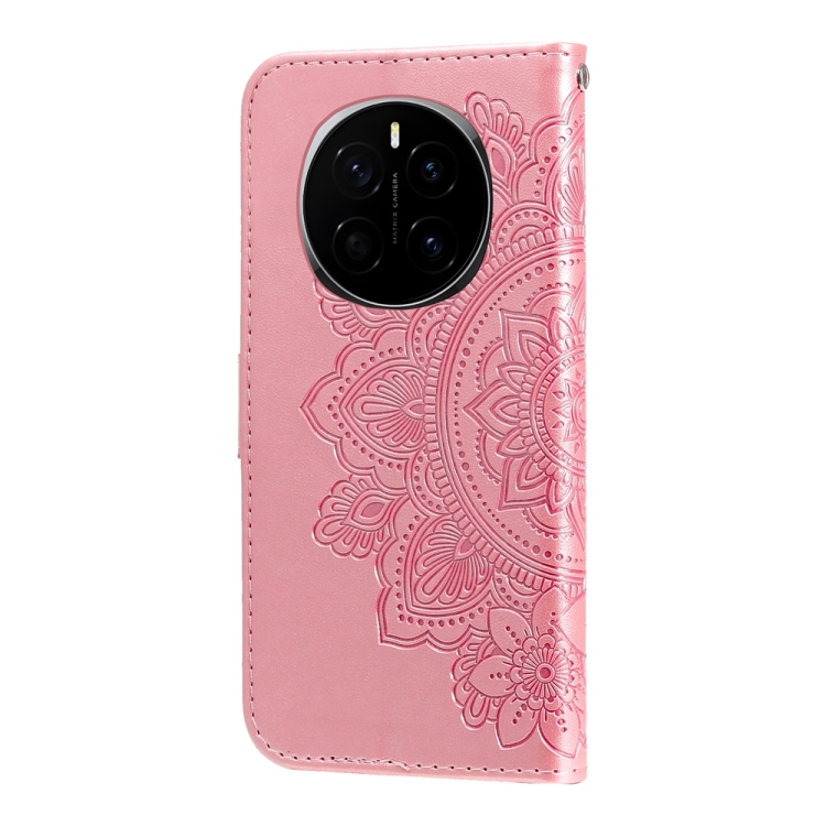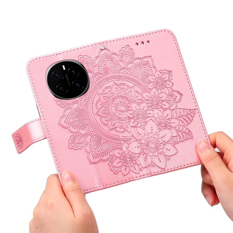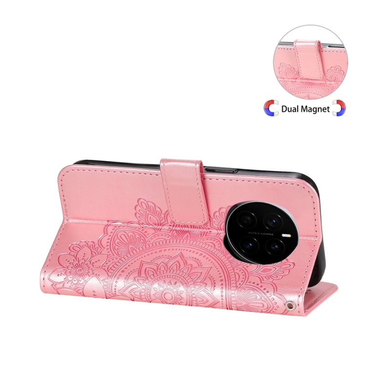 Funda de Cuero For Honor Magic7 con Relieve de Flores de Siete Pétalos (Oro Rosa)