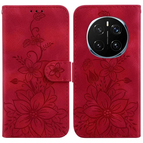 Funda de Cuero con Relieve de Lirio para Honor Magic7 Pro (Roja)