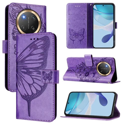 Funda de Cuero para Honor X9C 5G con Mariposas en Relieve (Morado)