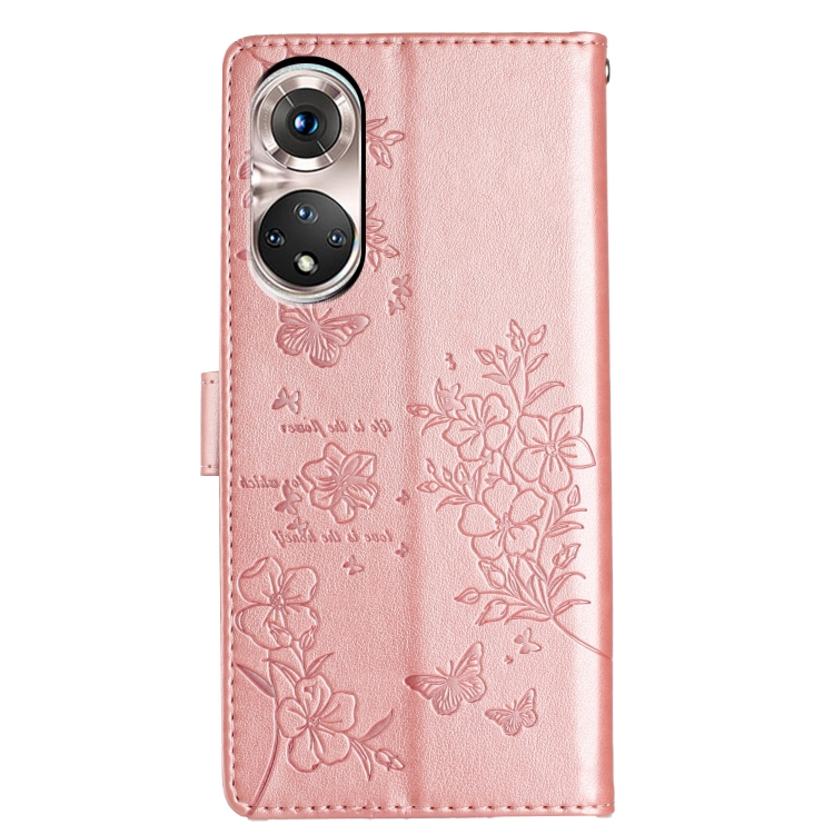 Funda de Cuero Huawei P50 Pro con Relieve de Mariposa y Flor (Oro Rosa)