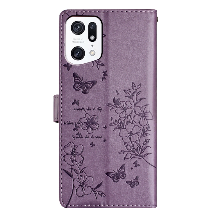 Funda de Cuero con Relieve de Mariposa y Flor para Oppo Find X5 Pro (Morado)