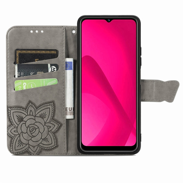 Funda de Cuero con Relieve Mariposa y Flor para Oukitel C53 (Gris)