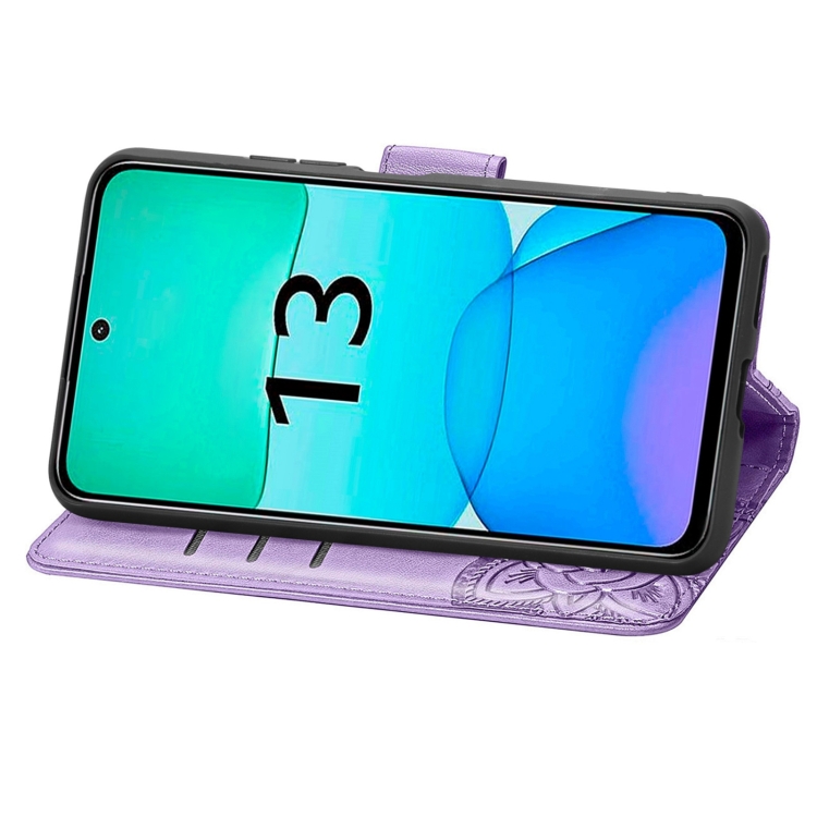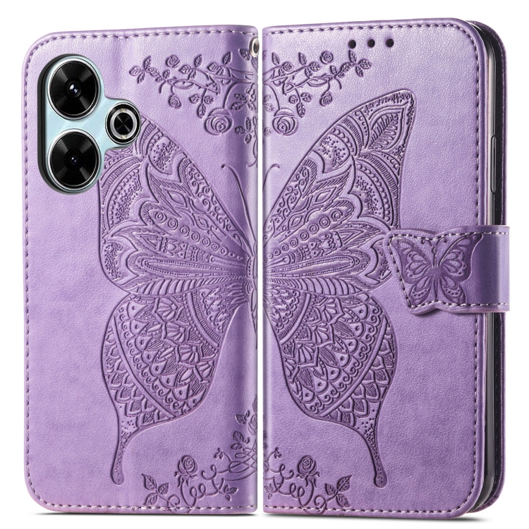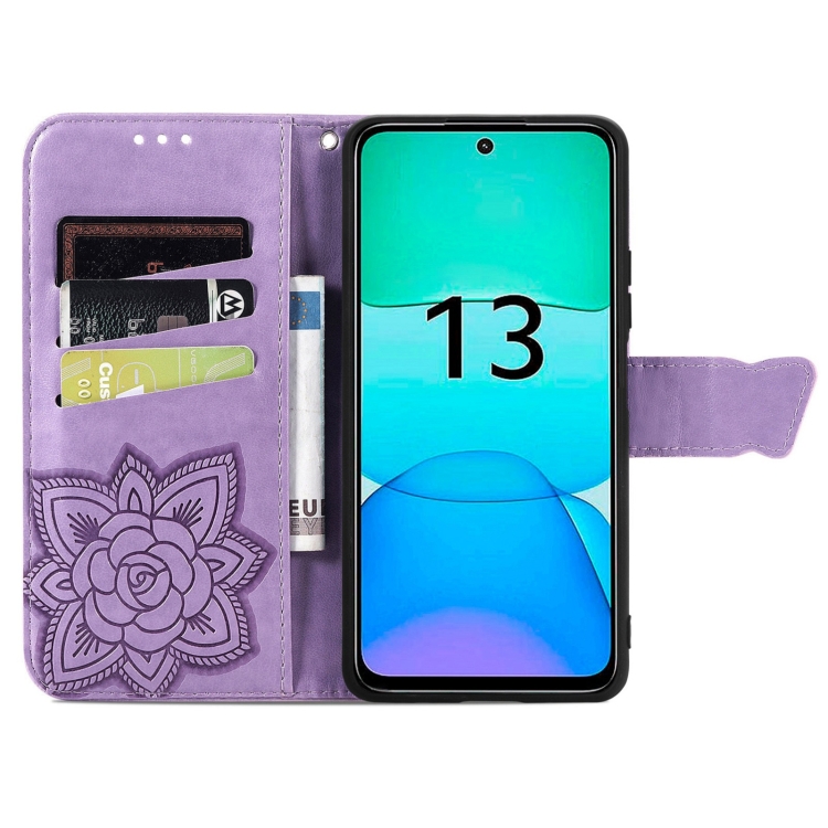 Funda de Cuero con Relieve de Mariposa y Flor para Xiaomi Redmi 13 4G (Lavanda)