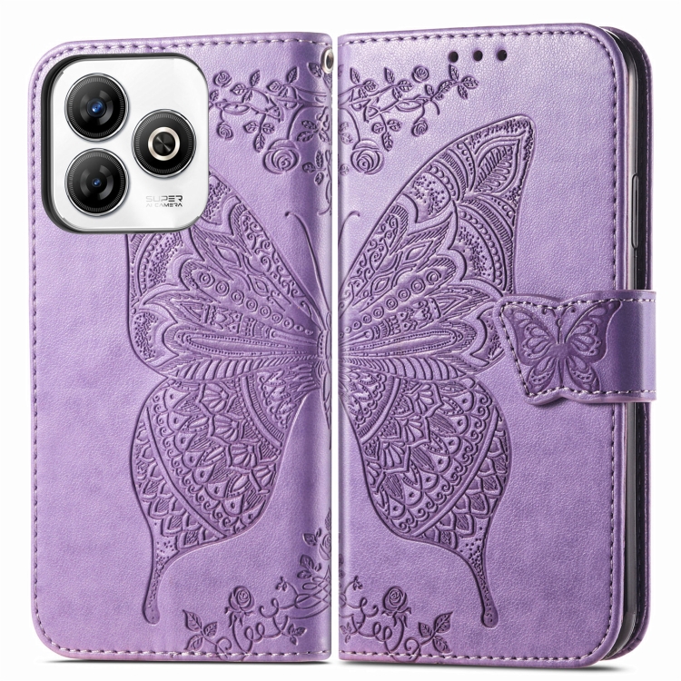 Funda de Cuero con Relieve Mariposa y Flor para ZTE Blade A75 4G (Morado Claro)