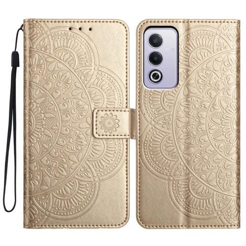 Funda de Cuero con Relieve Floral para Oppo A3 Pro 5G (Dorada)
