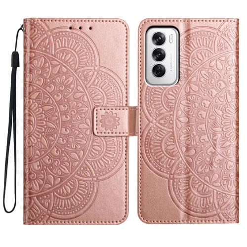 Funda de Cuero con Relieve Floral para Oppo Reno12 Global (Oro Rosa)