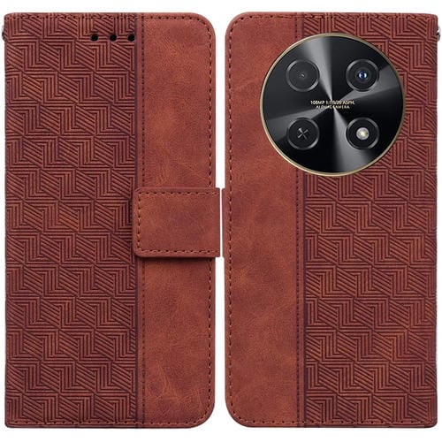 Funda de Cuero con Relieve Geométrico para Huawei Nova 12I 4G (Marrón)