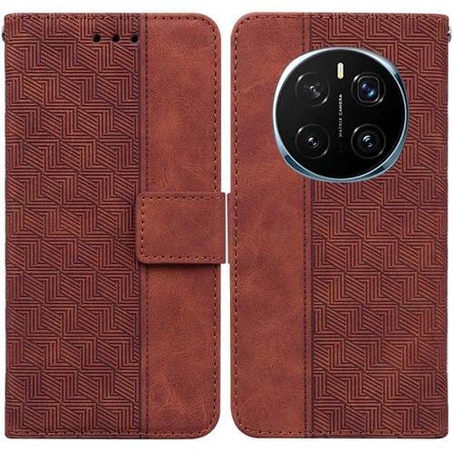 Funda de Cuero con Relieve Geométrico para Honor Magic7 Pro (Marrón)