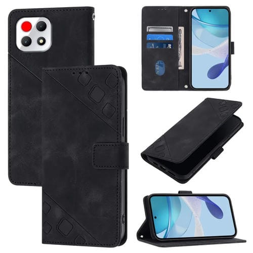 Funda de Cuero con Relieve para Teléfono T-Mobile Revvl 7 5G (Negra)