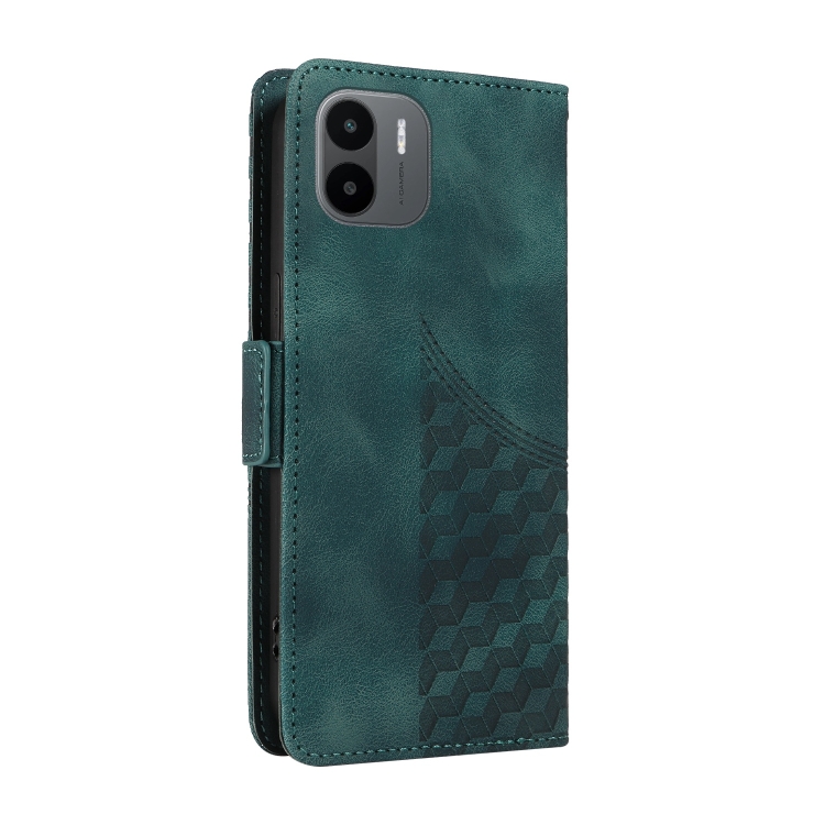 Funda de Cuero con Rombos En Relieve y Estrellas para Redmi A1 4G/A2 4G (Verde)
