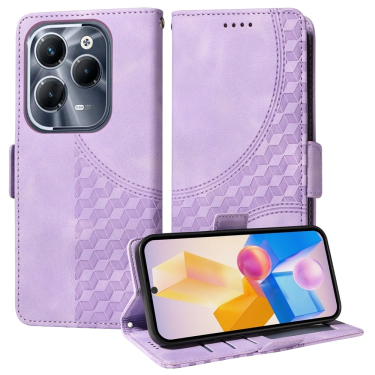 Funda de Cuero con Rombos en Relieve y Estrellas para Infinix Hot 40 y Hot 40 Pro (Morado)