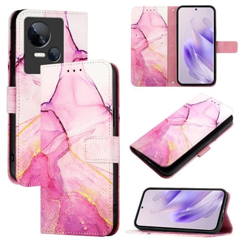 Funda de Cuero con Tapa para Tecno Spark 10 5G Pt003 con Diseño de Mármol (Rosa, Morado y Dorado)