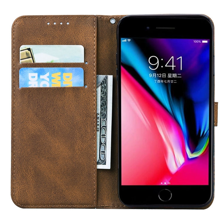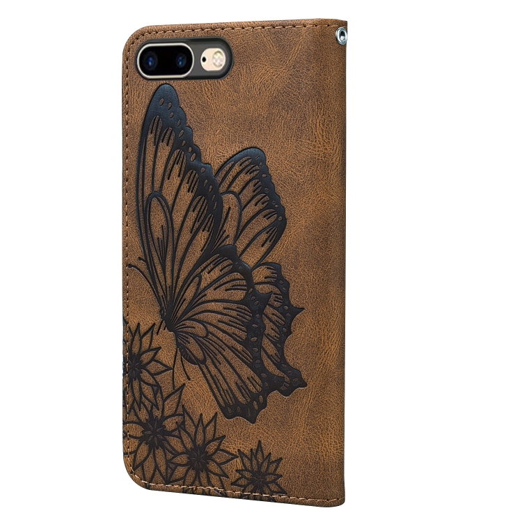 Funda de Cuero Skin Feel con Tapa Horizontal Estampado Mariposas Soporte Ranuras Tarjetas Billetera para iPhone 6 Plus / 6S Plus (Marrón)