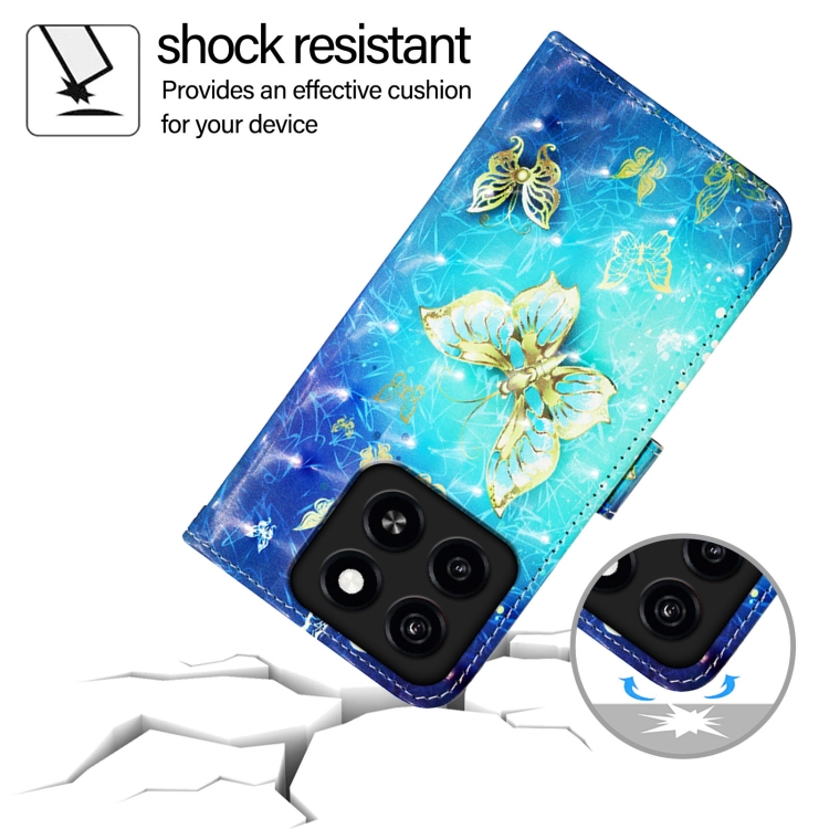 Funda de Cuero con Tapa Horizontal y Pintura 3D para ZTE Blade A35/A55 (Mariposa Dorada)