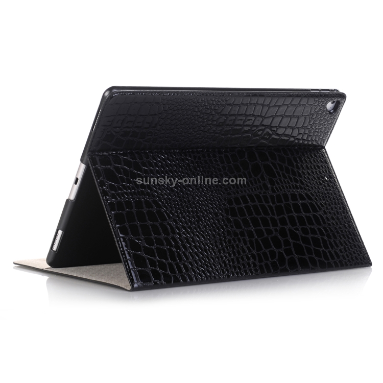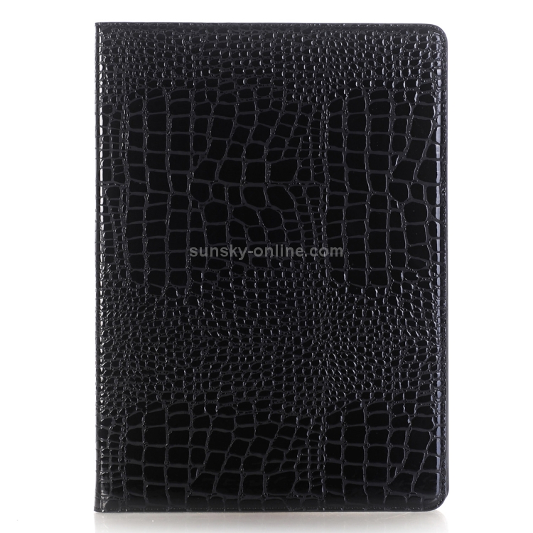 Funda de Cuero iPad Air 2 Tapa Horizontal Textura Cocodrilo Soporte Ranuras Tarjetas Billetera (Negro)