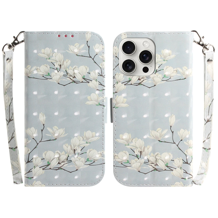 Étui en cuir à rabat horizontal couleur 3D pour iPhone 16 Pro (Magnolia)