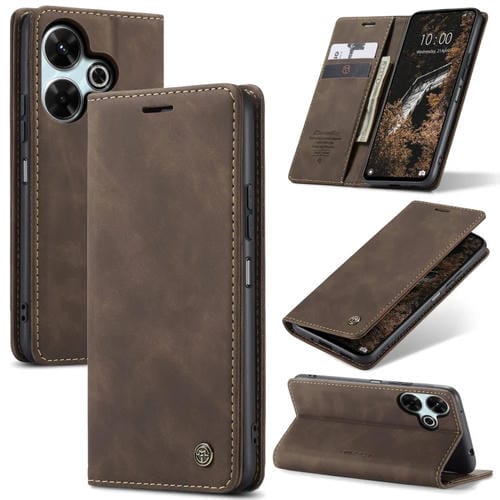 Funda de Cuero con Tapa Horizontal Multifuncional Caseme 013 para Redmi 13 (Café)
