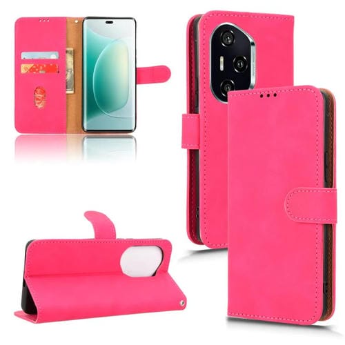 Funda de Cuero con Tapa Magnética y Tacto Agradable para Honor 300 Pro (Rosa y Rojo)