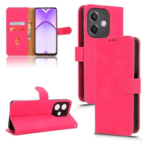 Funda de Cuero con Tapa Magnética y Tacto Agradable para Oppo A3X 5G (Rosa y Rojo)