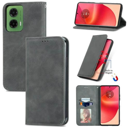 Funda de Cuero con Tapa Magnética para Motorola Moto G35 (Gris)