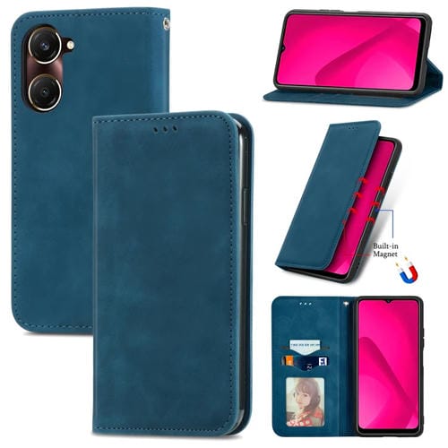 Funda de Cuero con Tapa Magnética y Tacto Retro para Vivo Y37 (Azul)