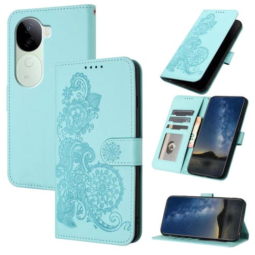 Funda de Cuero con Tapa para Teléfono con Diseño de Flor de Datura En Relieve de la India para Vivo Iqoo Z9S/V40E (Azul Claro)