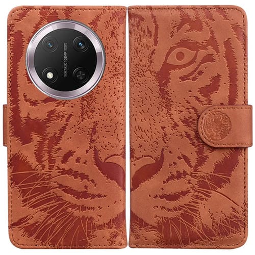 Funda de Cuero con Tapa y Estampado de Tigre para Honor X9C (Marrón)