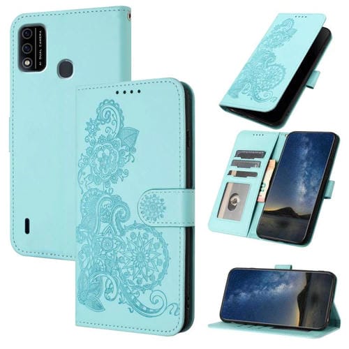 Funda de Cuero con Tapa para Teléfono Itel A48 con Diseño Flor de Datura (Azul Claro)
