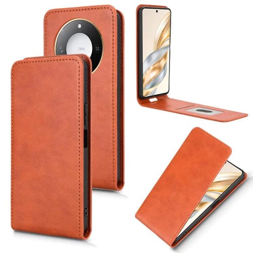 Funda de Cuero con Tapa Vertical Magnética para Teléfono Honor X60 5G/X9C (Marrón)