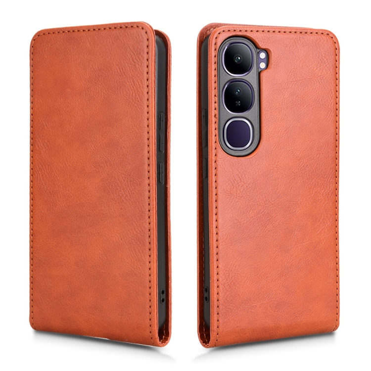 Funda de Cuero con Tapa Vertical Magnética para Teléfono Vivo V40 Lite 5G/4G Idn (Marrón)