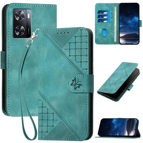Funda de Cuero con Tapa y Cordón para Oppo A57 4G Yx0080 con Diseño En Relieve de Mariposa y Cuadrícula (Azul Claro)