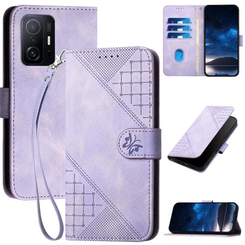 Funda de Cuero con Tapa y Cordón para Xiaomi Mi 11T Yx0080 con Diseño de Mariposa En Relieve y Cuadrícula (Morado Claro)