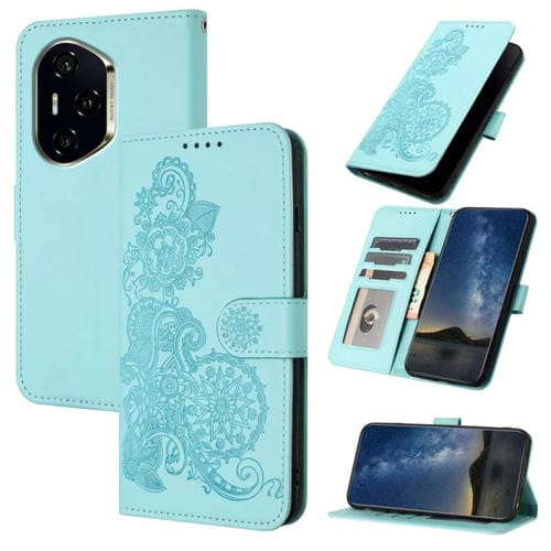 Funda de Cuero con Tapa y Diseño Flor de Datura para Honor 300 Pro y 300 Ultra (Azul Claro)