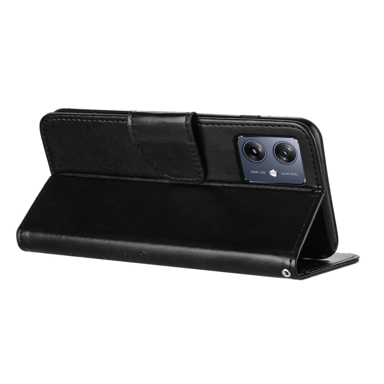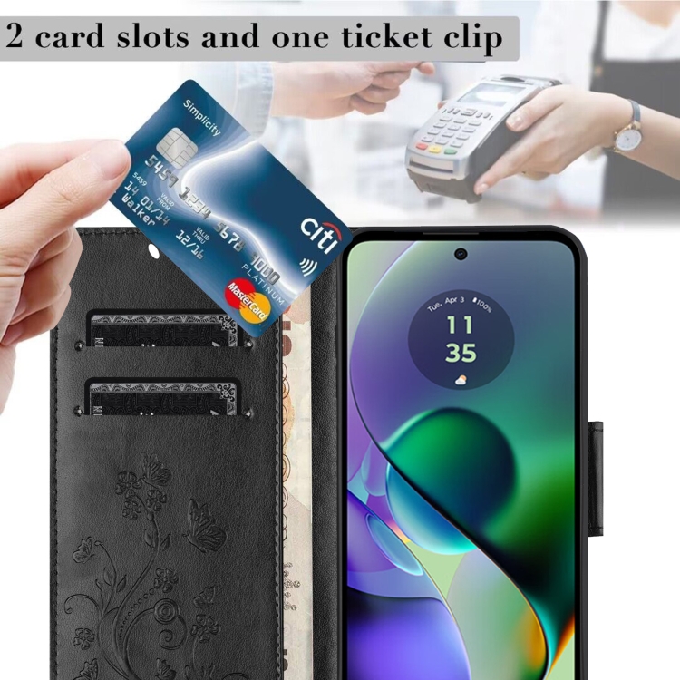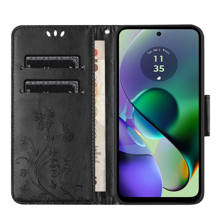 Funda de Cuero con Tapa para Motorola Moto G55 Diseño Flores y Mariposas (Negro)