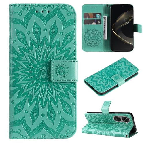 • 1x Funda de Cuero con Tapa para Huawei Nova 12 Se y Nova 11 Se con Diseño Girasol (Verde)