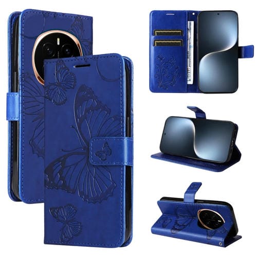 Funda de Cuero con Tapa y Mariposa en Relieve 3D para Honor Magic7 5G (Azul)