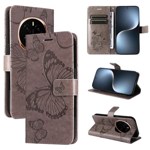 Funda de Cuero con Tapa y Mariposa en Relieve 3D para Honor Magic7 5G (Gris)