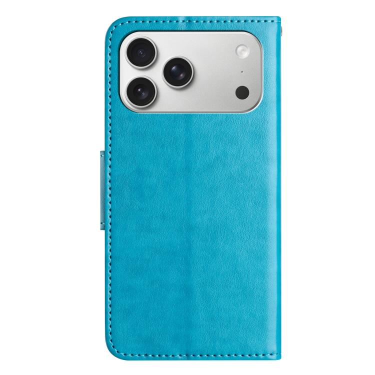 Funda de cuero con tapa y diseño de mariposas y flores para iPhone 17 Pro (azul)