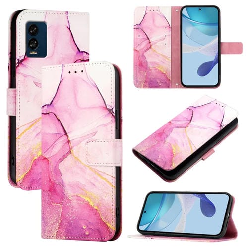 Funda de Cuero con Tapa para BLU View Speed 5G Pt003 Diseño Mármol (Rosa, Morado y Dorado)