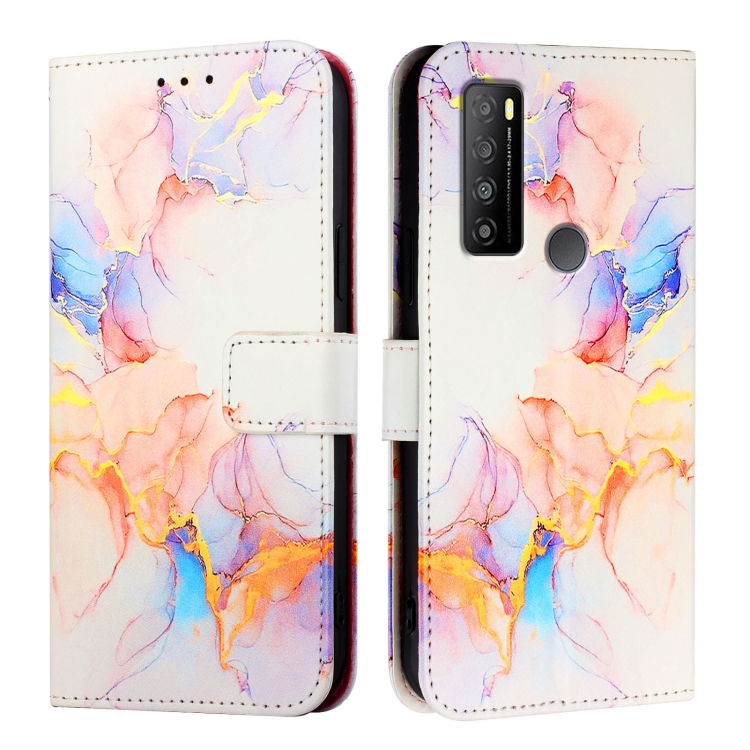 Funda de Cuero con Tapa para Tcl 30 Xl T701Dl Pt003 con Diseño Mármol (Galaxy Marble White)