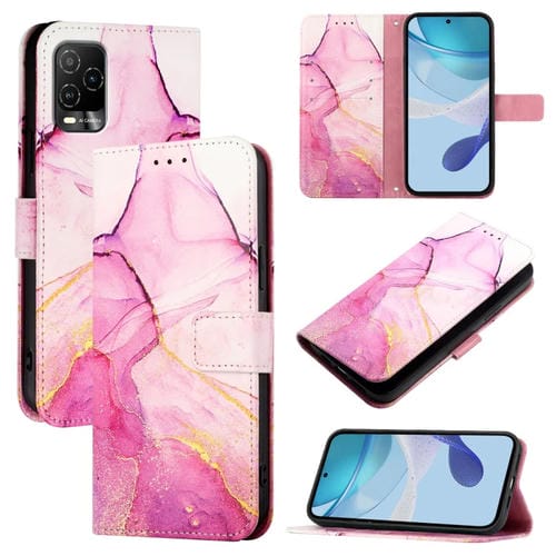 Funda de Cuero con Tapa para Teléfono BLU View 5 Pro Pt003 con Diseño Mármol (Rosa, Morado y Dorado)