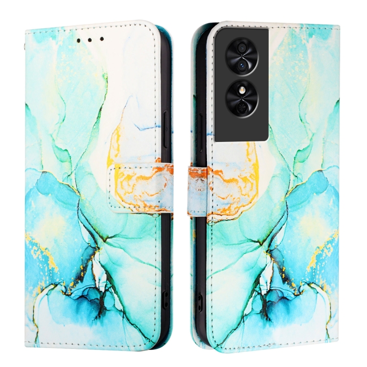 Funda de Cuero con Tapa y Diseño de Mármol para TCL 50 Se Pt003 (Verde)