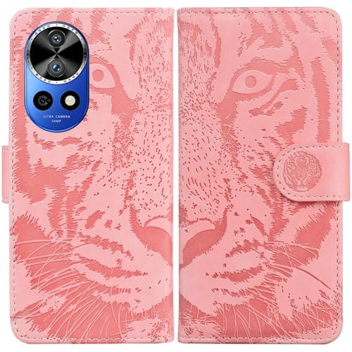 Funda de Cuero con Tapa y Estampado de Tigre para Huawei Nova 12 Pro y Nova 12 Ultra (Rosa)